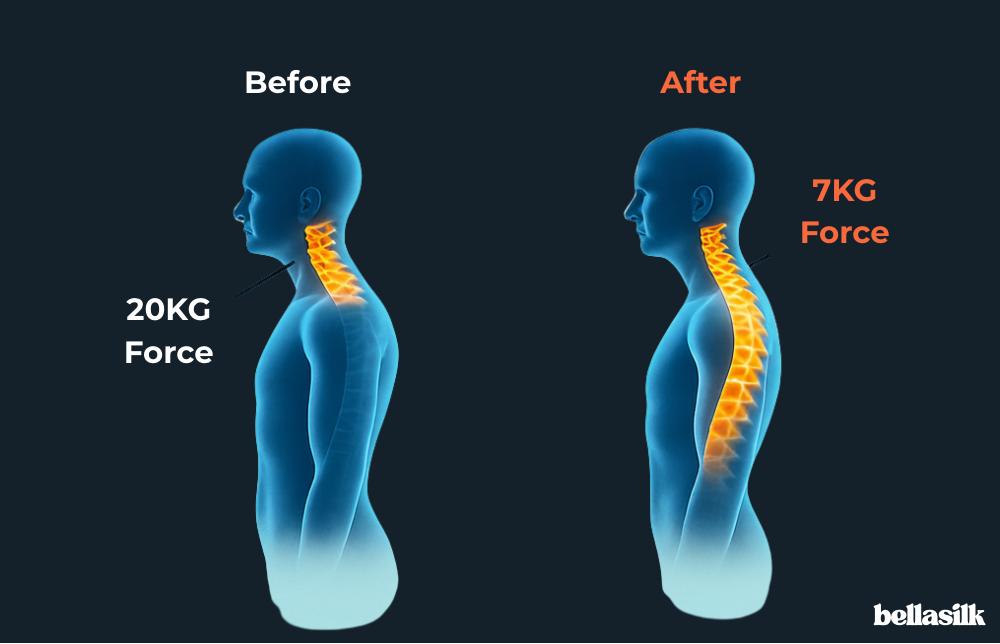 The BellaSilk Multi-Therapy Massager is engineered to relieve neck and upper-back pain caused by forward head posture, muscle stiffness, and everyday tension.