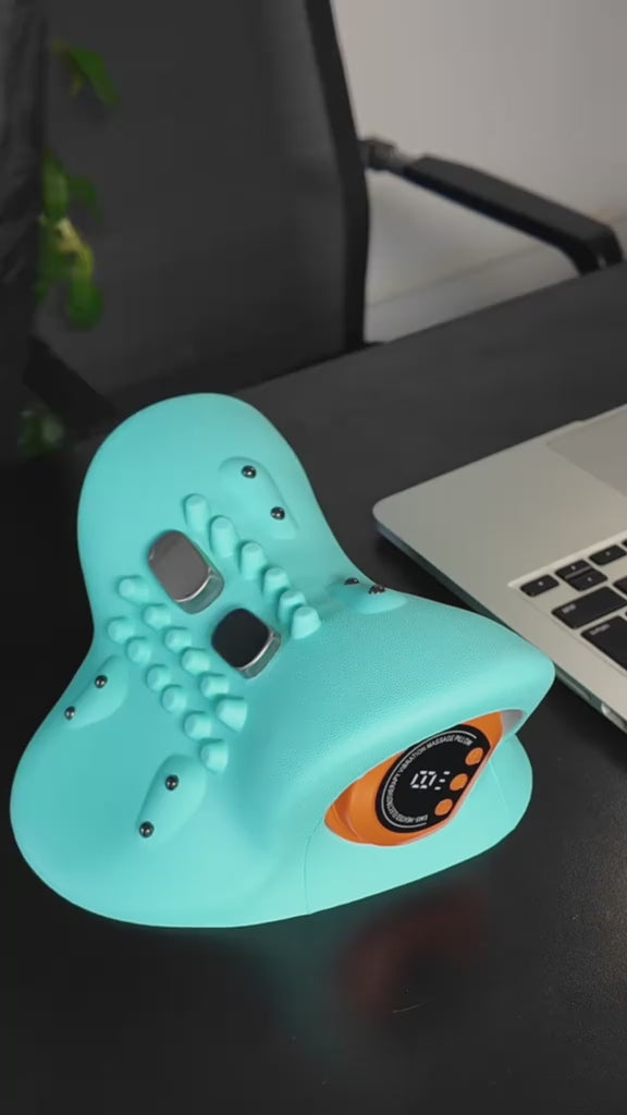 It combines cervical stretching, deep-tissue massage, EMS muscle activation, and soothing heat to deliver fast, noticeable relief.