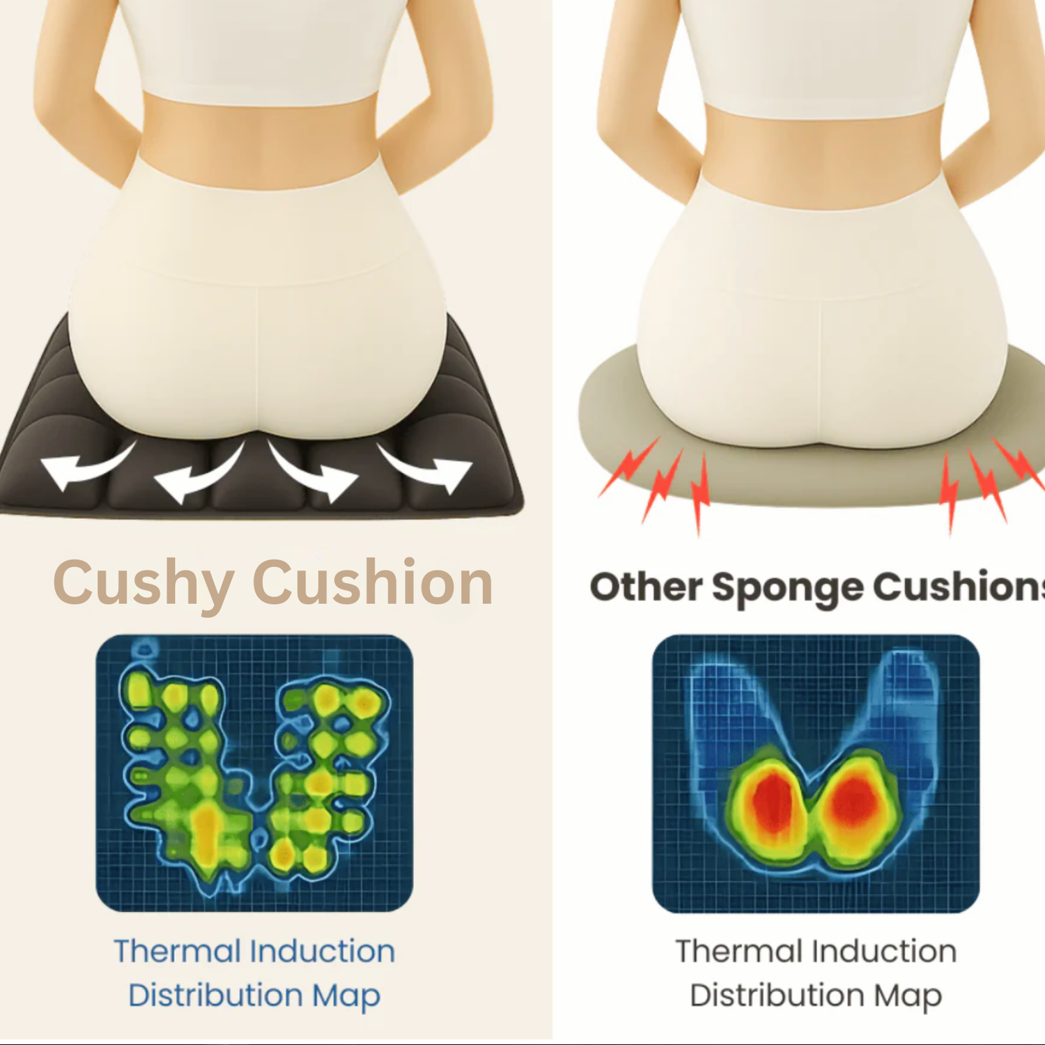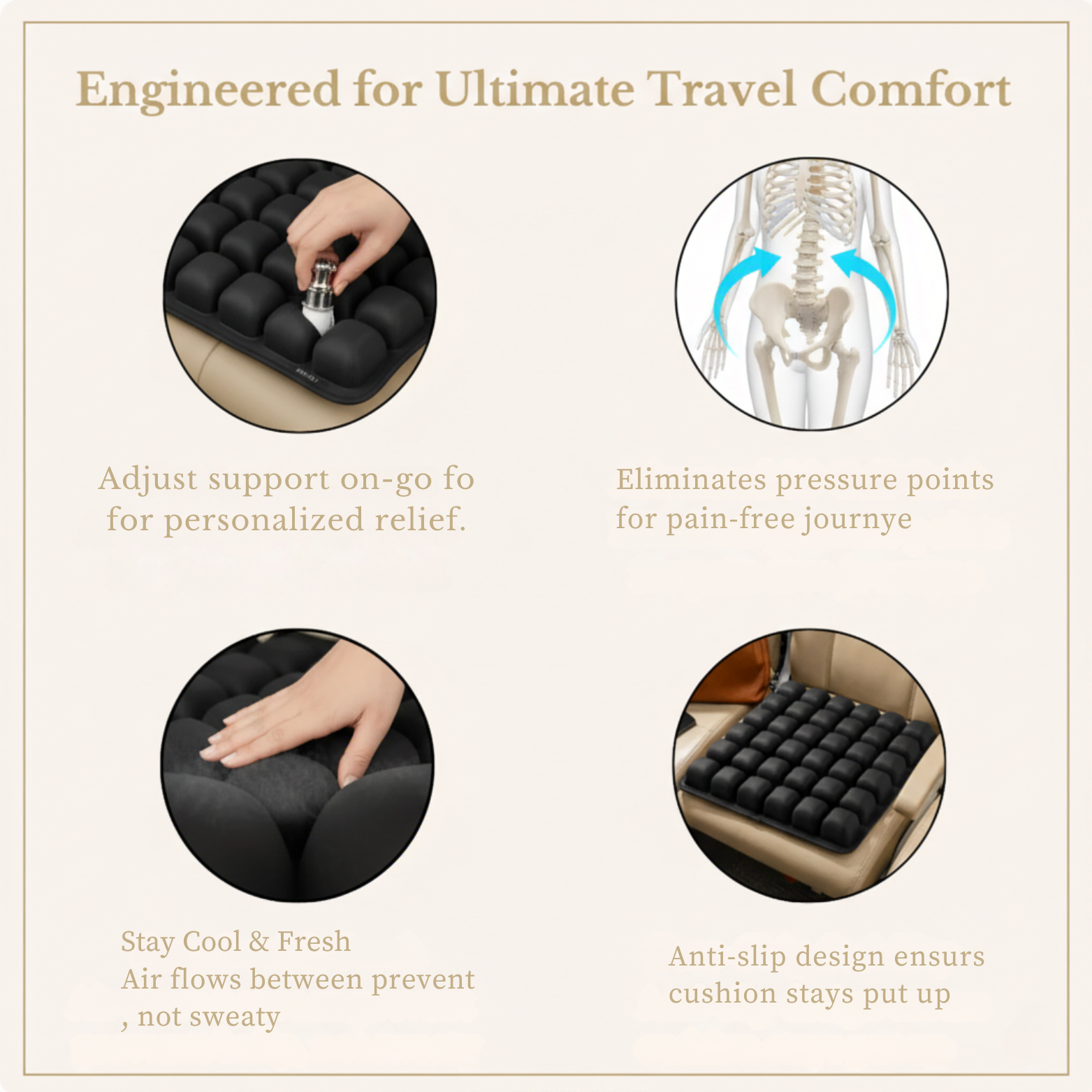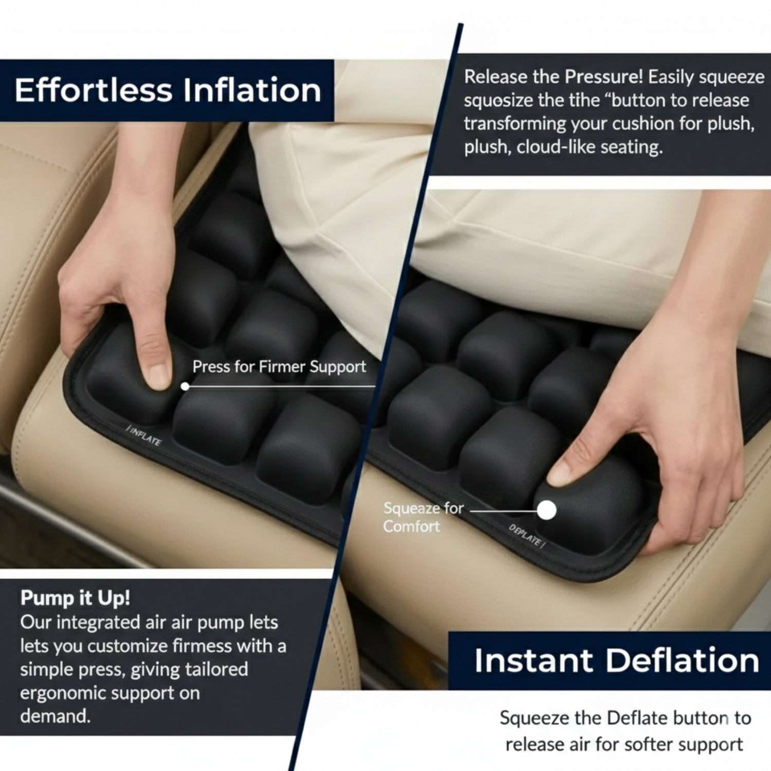 Foam cushions flatten quickly and trap heat, leaving you sore and sweaty. Air-based support stays cool, won’t compress, and naturally adapts to your body.